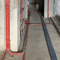 輕質隔墻采用玻璃絲棉氈包裹管道,外包紅磚或預制件包管,大幅降低落水管噪音,